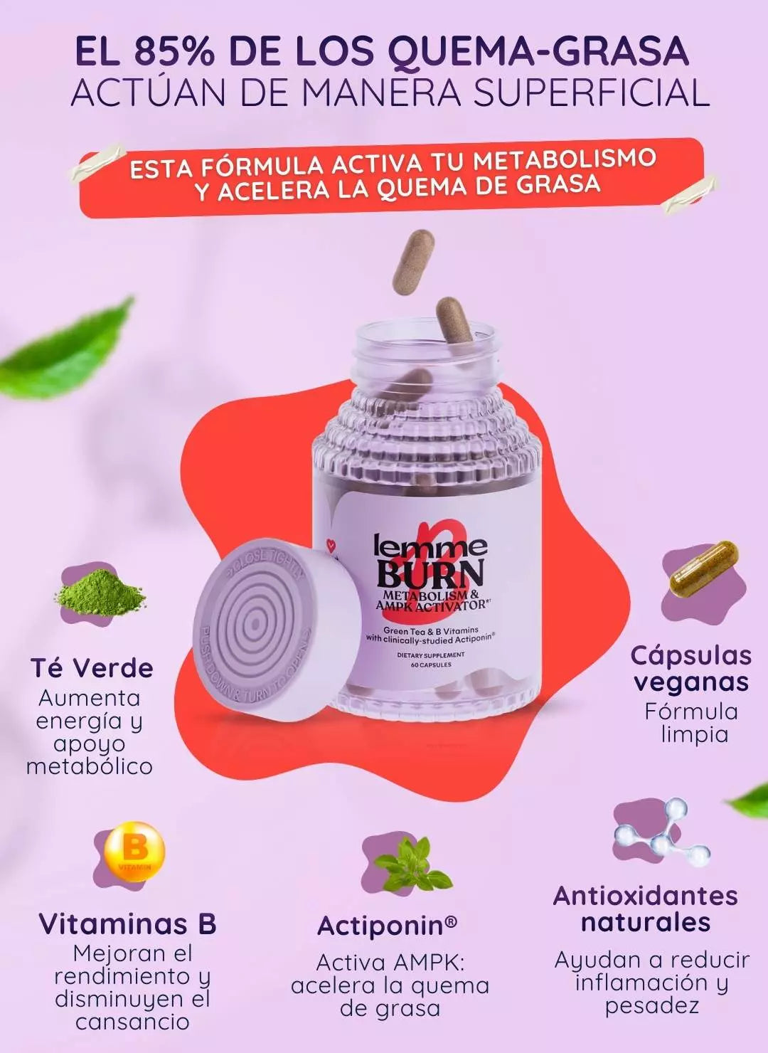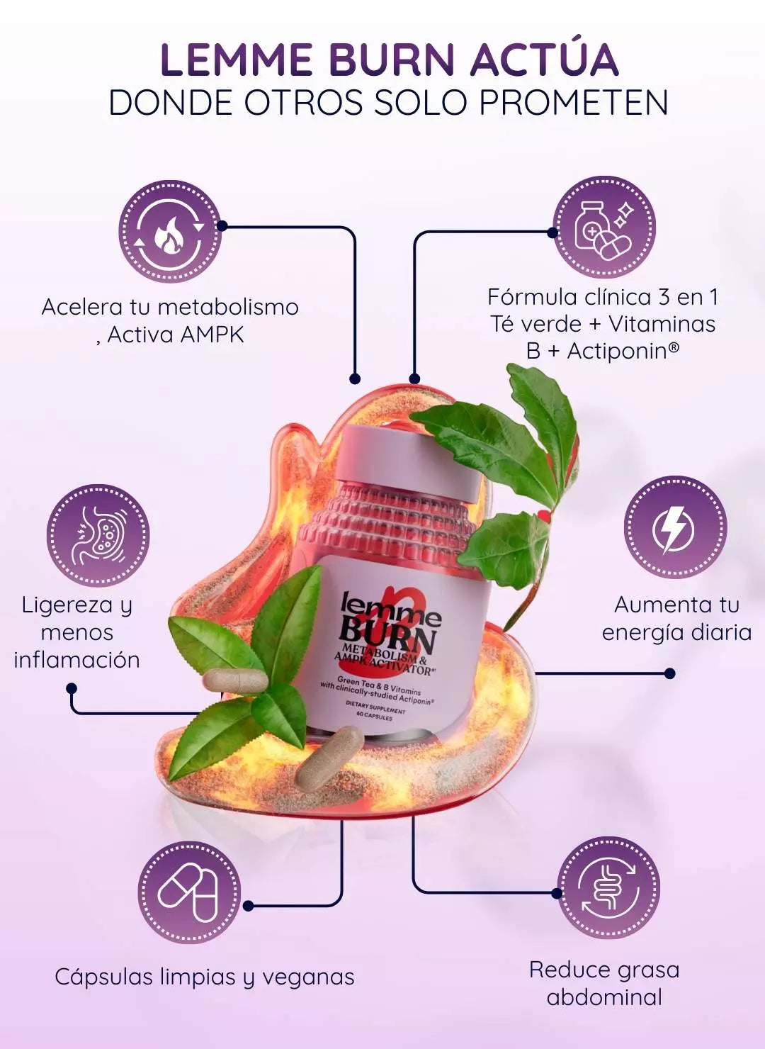 Sí — Lemme Burn está formulado con el ingrediente clínicamente estudiado Actiponin® (extracto de Gynostemma), que en combinación con dieta y ejercicio mostró efectos en grasa abdominal, metabolismo y composición corporal en aproximadamente 12 semanas